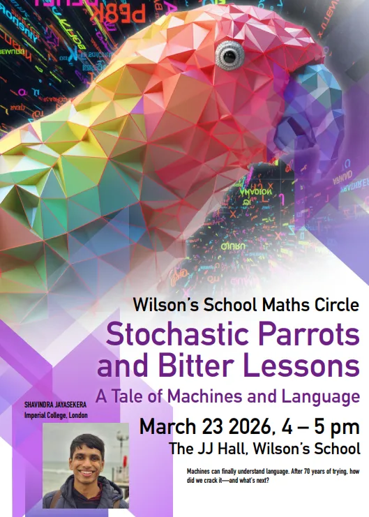 The final lecture in this year's series on 23 March will see Shavindra Jayasekera (OW 2018 - now at Imperial College, London) deliver a talk on 'Stochastic Parrots and Bitter Lessons: A Tale of Machines and Language'. Shavindra's talk will centre on the fact machines can finally understand language (after 70 years of trying), exploring how this was cracked and - perhaps most importantly - what comes next.